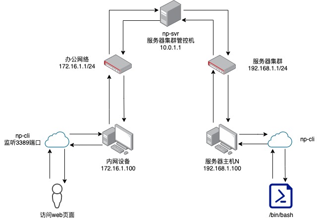 - 192.168.1.100上的np-cli接收到connect_request消息,创建/bin/bash进程
