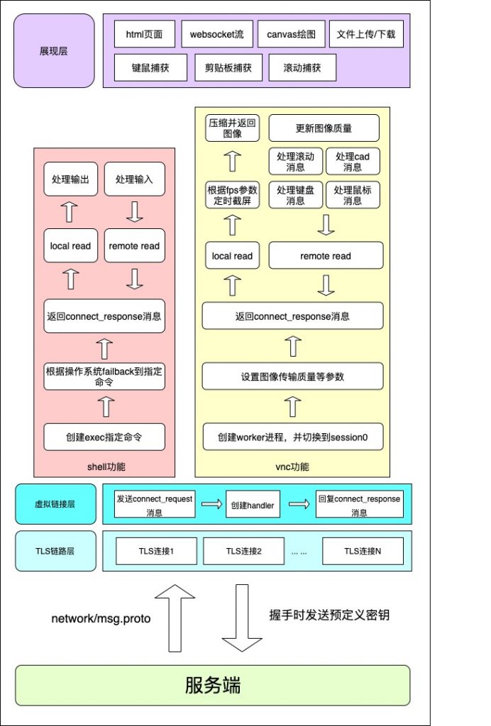 - 创建vnc连接后远端服务会创建一个子进程进行截屏和键鼠操作, 主进程会在