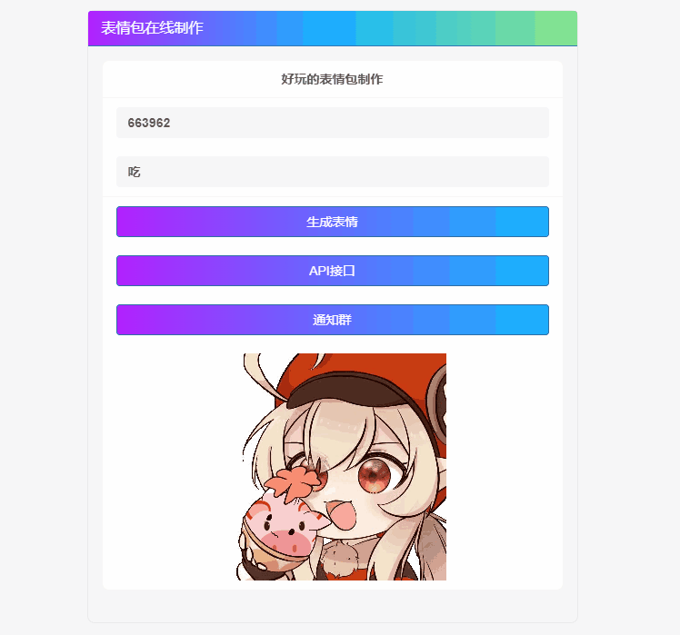 这些表情包都有专门的API,您也可以调用,参考我们的API大全