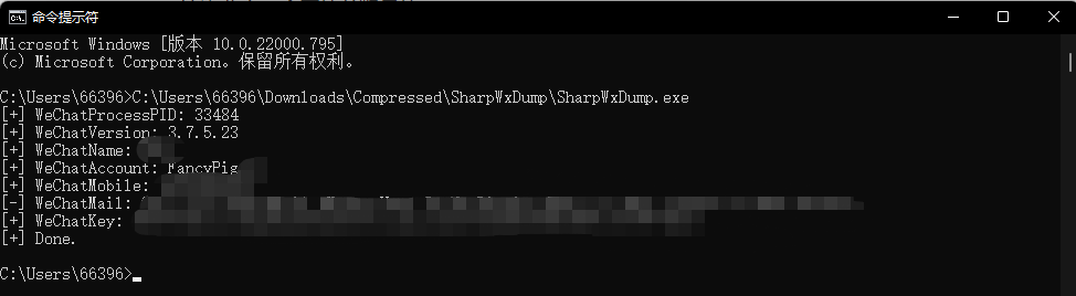将SharpWxDump.exe拖入CMD中,发现可以显示