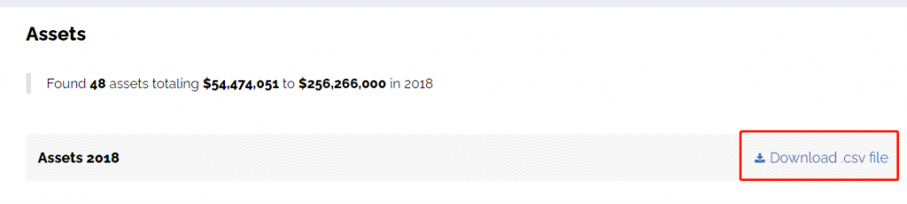 这里可以看到从2008年到2018年的全部资产表格,可以按需修改年份查看对应每一年的财产详情