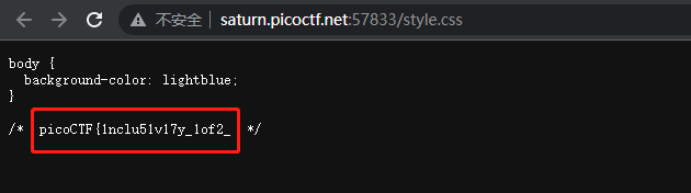 在打开style.css时,可以发现有pico ctf的flag前半部分