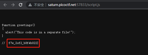 在打开script.js,可以发现pico ctf的flag后半部分