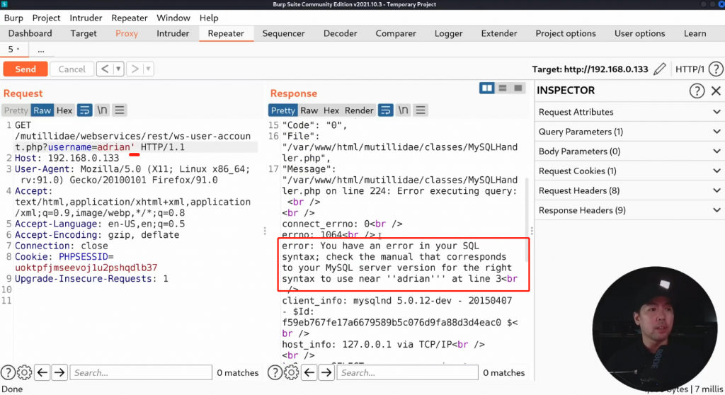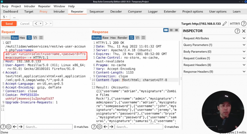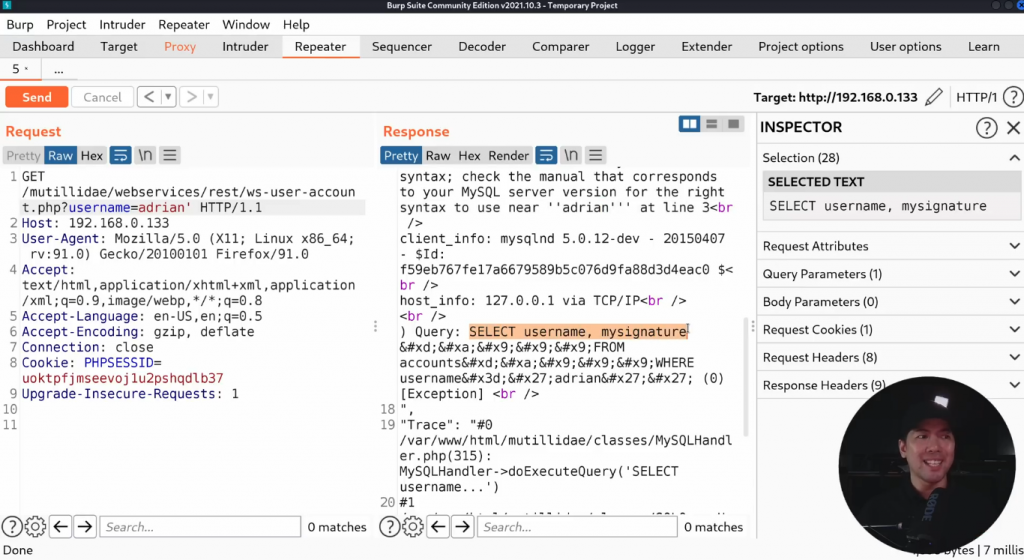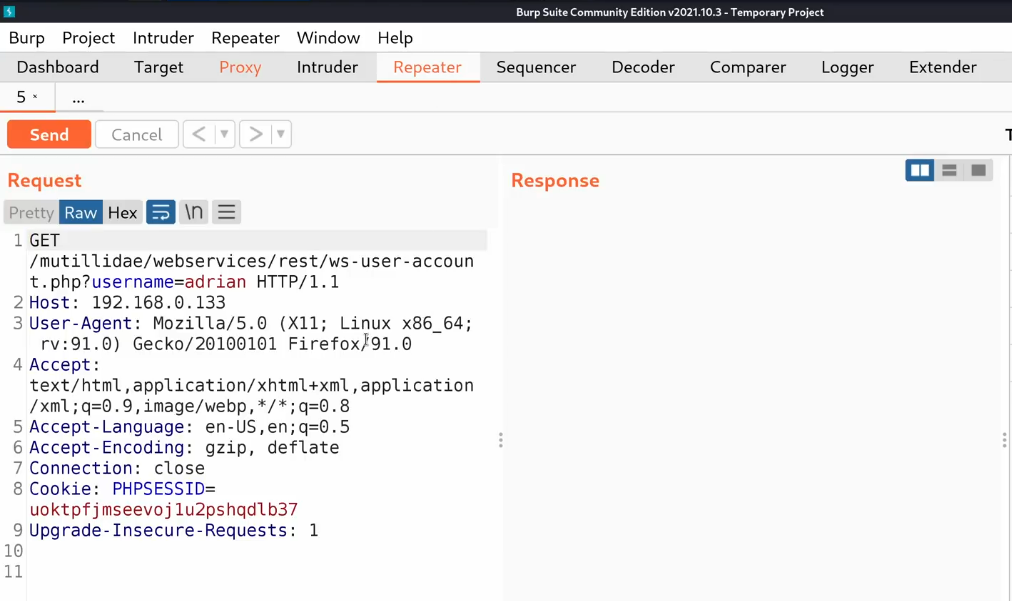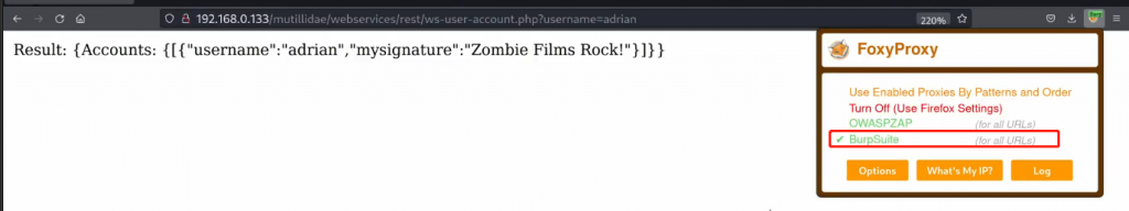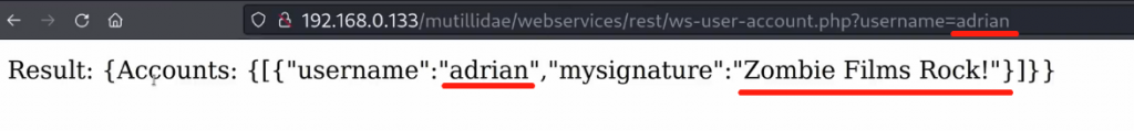 我们访问mutillidae/webservices/rest/ws-user-account.php?username=adrian
