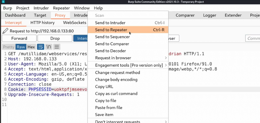 我们尝试通过BurpSuite进行拦截修改请求重新发包