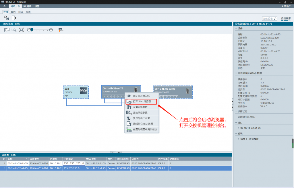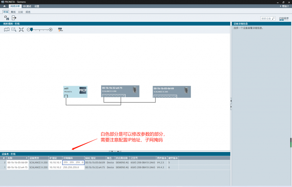 - 1、使用西门子官方配置程序——PRONETA对交换机进行初始配置。