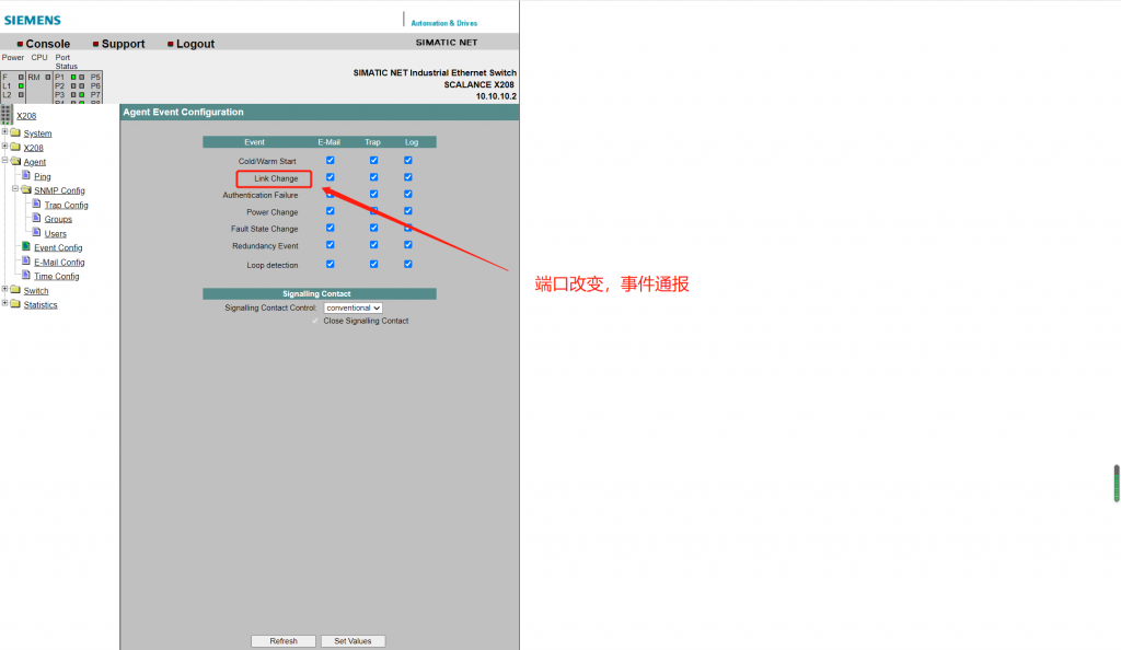 - 启用交换机需要主动报告的事件。