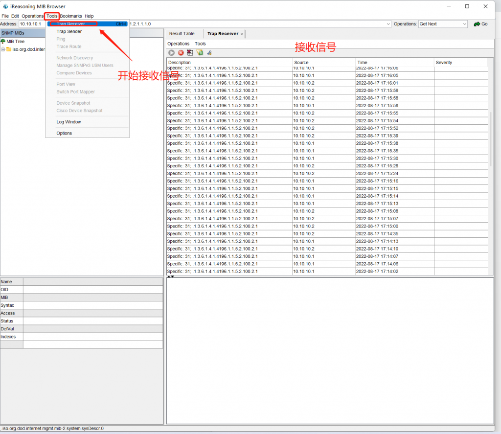- Tools ==> Trap Receive