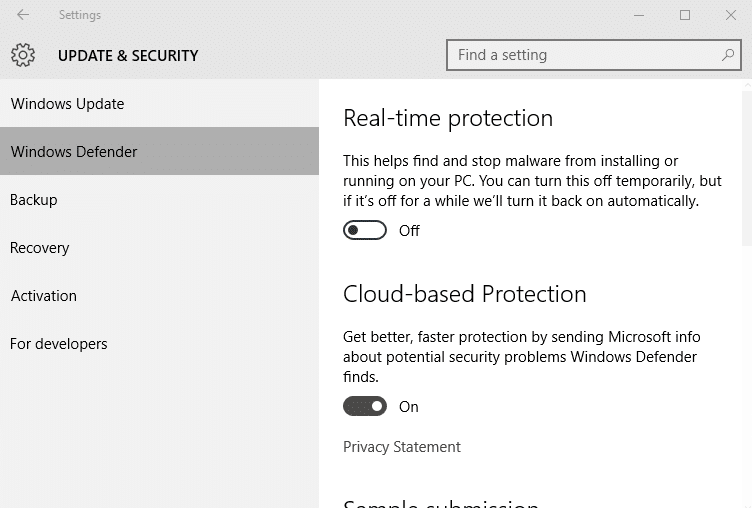 [HKEY_LOCAL_MACHINE\SOFTWARE\Policies\Microsoft\Windows Defender\Real-Time Protection]