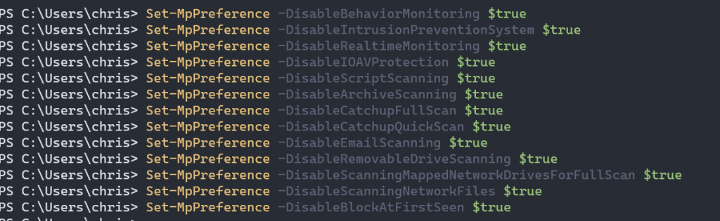 "DisableRealtimeMonitoring"=dword:00000001