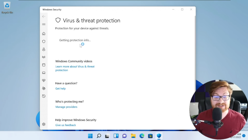 如果你现在在Windows 11中打开Windows Security应用程序,你会看到病毒和威胁保护已经完全消失。