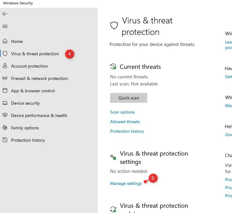 - 在Windows安全屏幕上打开病毒和威胁保护。