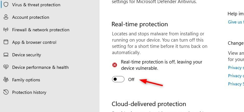 我们现在可以禁用实时保护,这对于大多数测试目的来说应该是足够了。当你关闭它时,你会得到一个警告,只要点击 "是 "就可以禁用Windows Defender。
