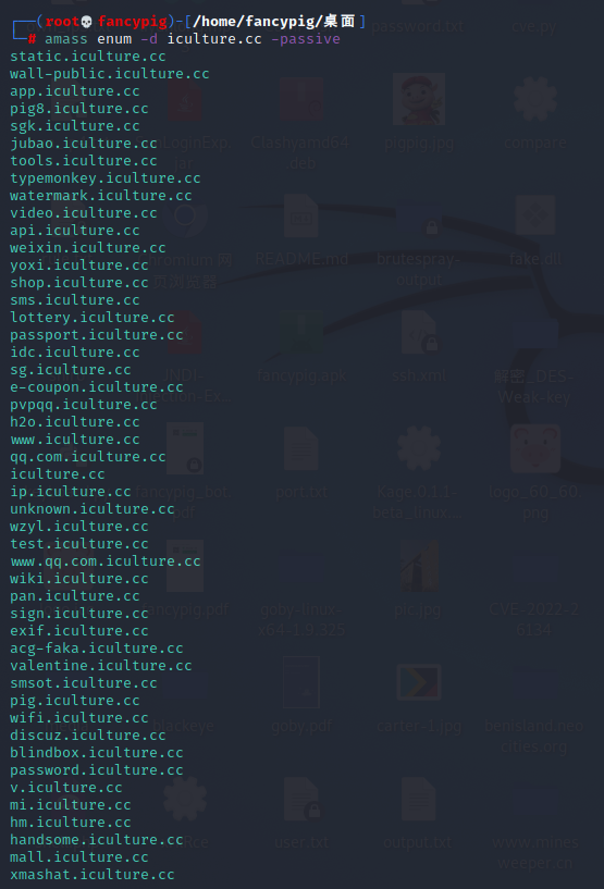 使用下面的命令即可,-d后面接域名,-passive代表使用被动方式,效率更高。