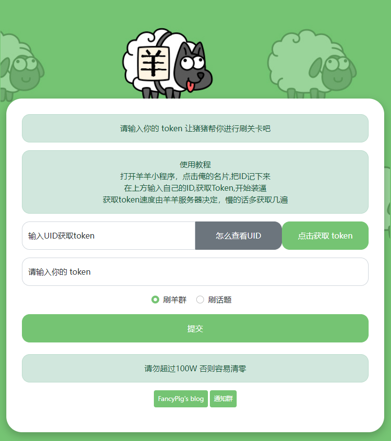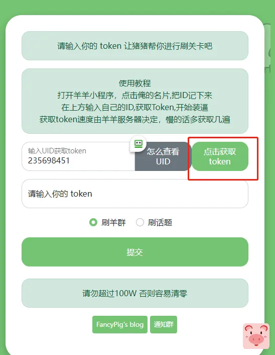 这里拿到token就可以刷羊群或者刷话题了,点击提交即可