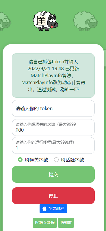 以下为2022-09-22更新版本,可以支持通过Token自动获取地图MD5,自动加入羊群