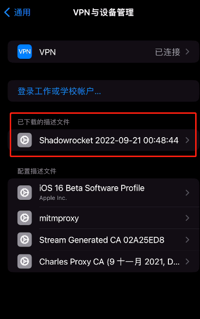 设置>通用>VPN与设备管理