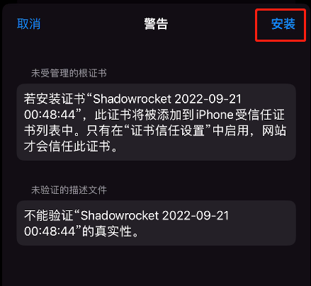 - Stream与Shadowrocket安装证书过程类似,这里不再赘述