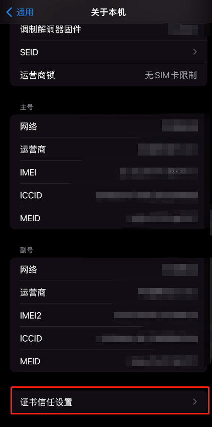 设置>关于本机>证书信任设置