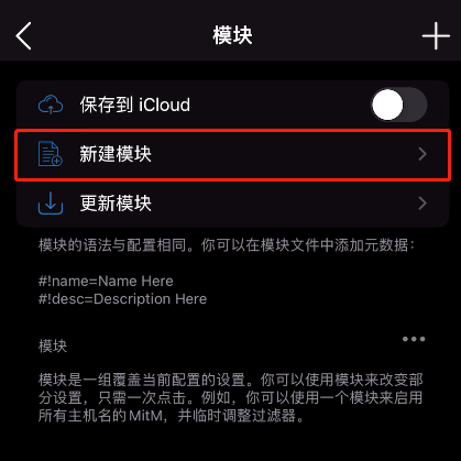 - Shadowrocket配置->模块->新建模块