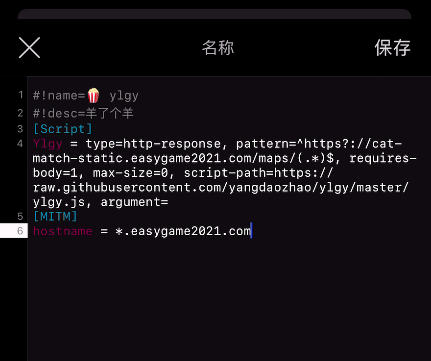 Ylgy = type=http-response, pattern=^https?://cat-match-static.easygame2021.com/maps/(.*)$, requires-body=1, max-size=0, script-path=https://raw.githubusercontent.com/yangdaozhao/ylgy/master/ylgy.js, argument=