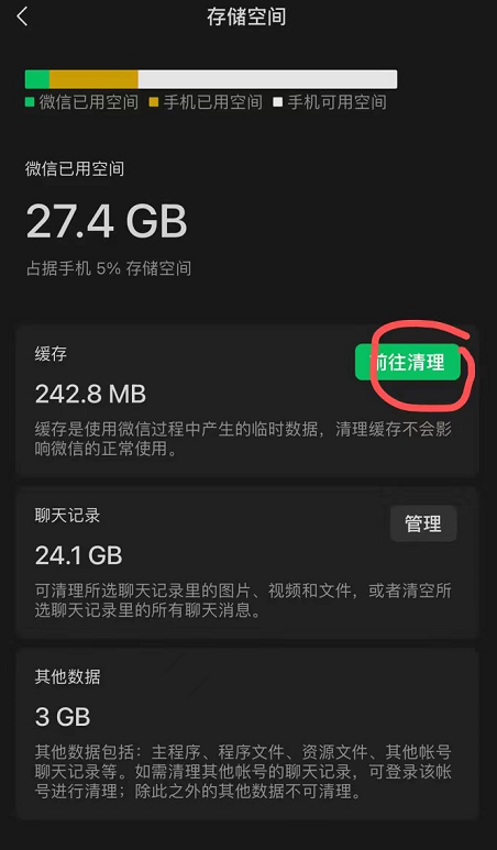 微信设置>通用>存储空间