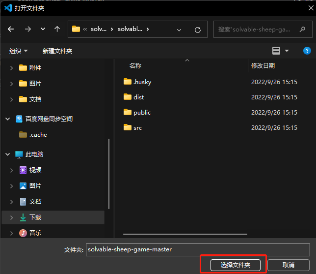选择我们下载好的项目solvable-sheep-game-master