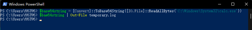 $base64string = [Convert]::ToBase64String([IO.File]::ReadAllBytes('C:\Windows\System32\calc.exe'))
