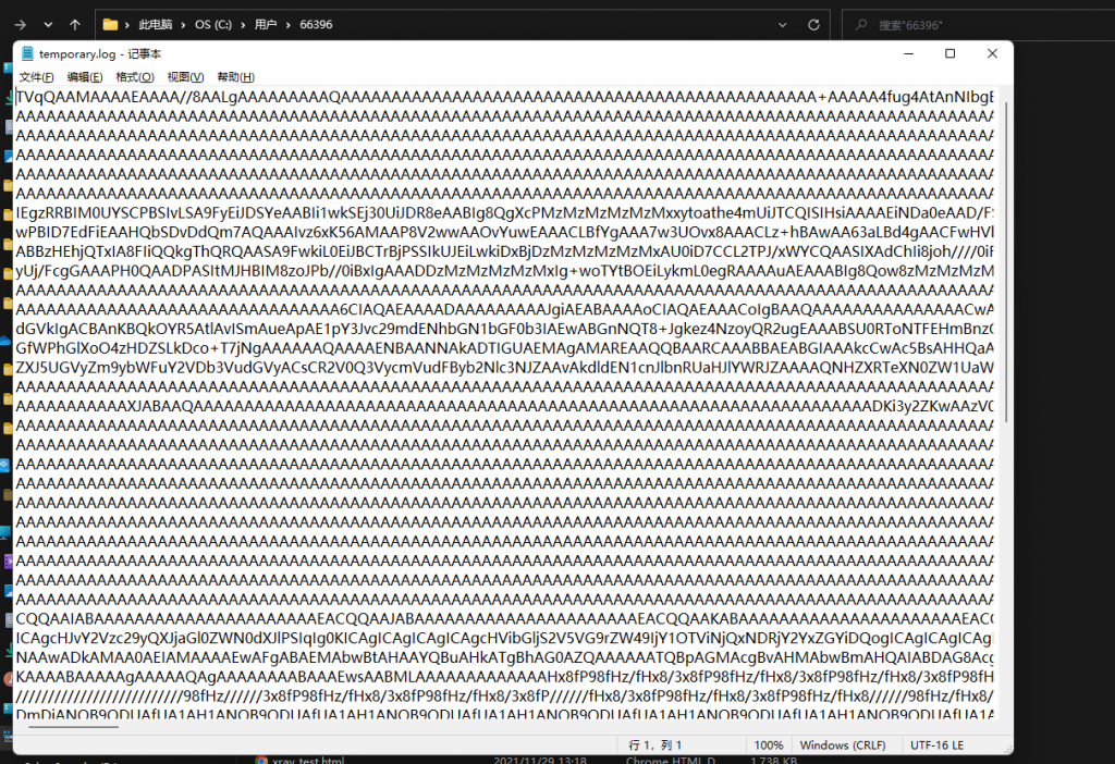 然后我们可以去输入命令的目录下,查看temporary.log文件