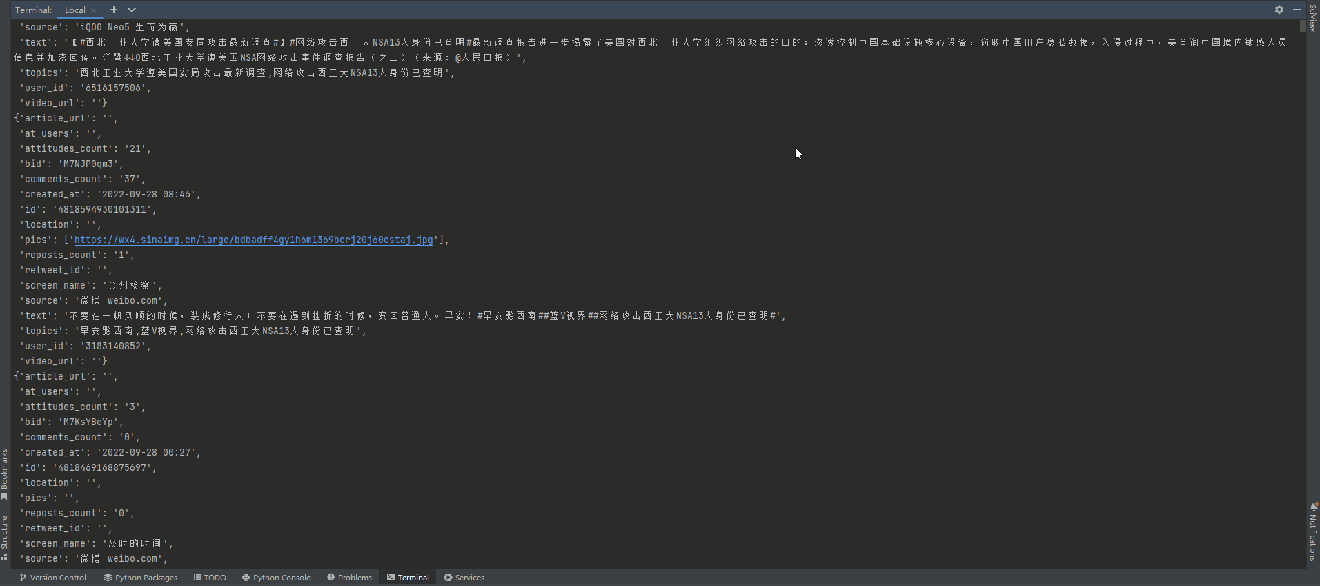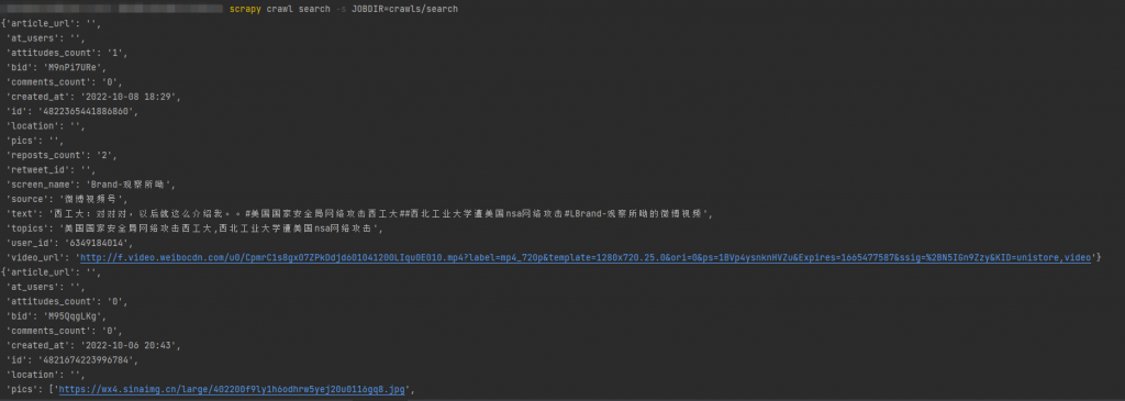 这里又回到了开头,如果我们想获取关于西北工业大学NSA事件相关的报道,我们可以对settings.py进行以下配置