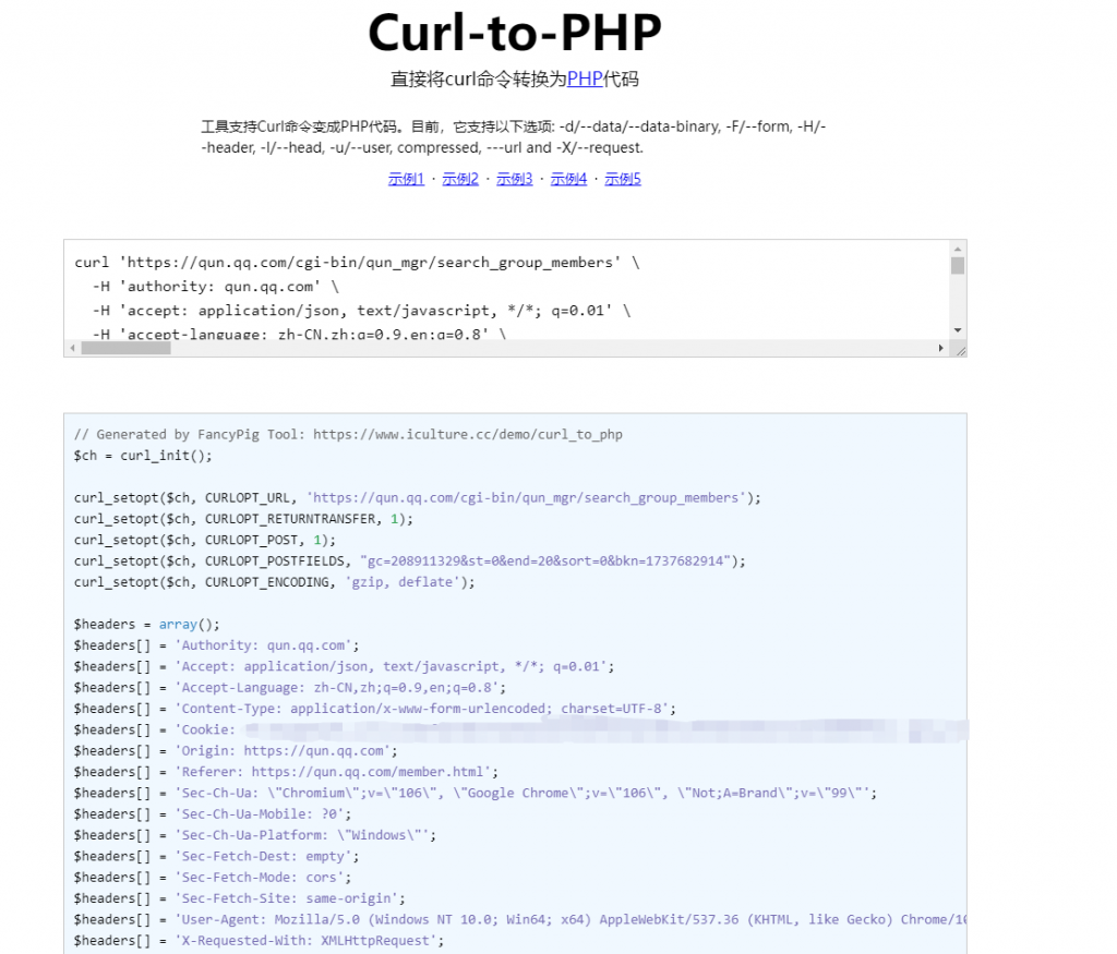 之后,我们为大家准备了一个CURL转PHP代码的在线网站