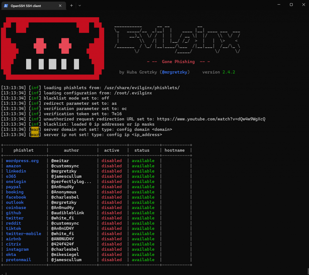 现在我们已经运行了Evilginx,所以在下一步,我们要处理好配置问题。