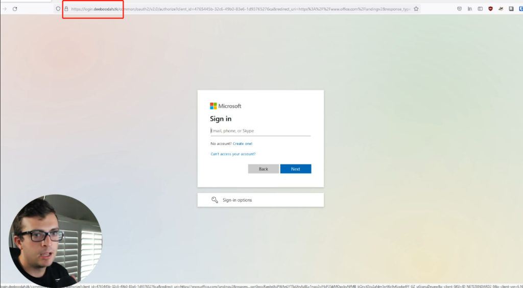 - 用户输入钓鱼网站,并得到Office 365的登录屏幕。