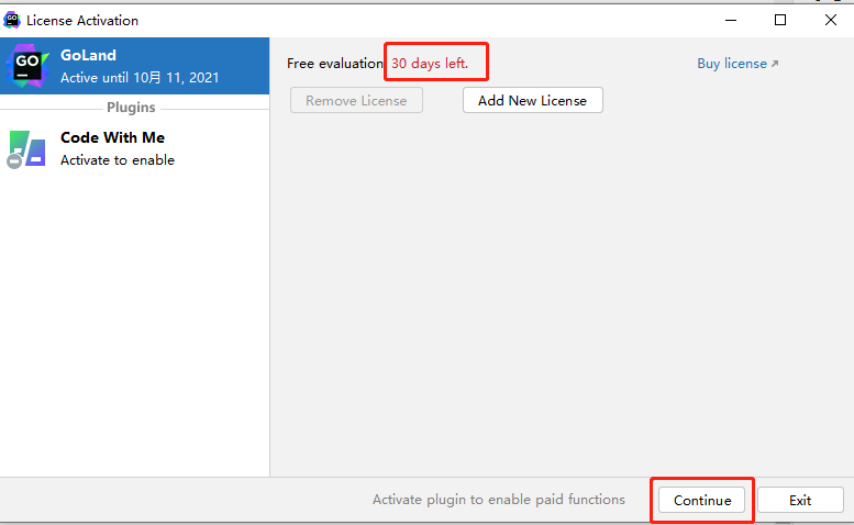 这里可以看到还有30天到期,然后点击Continue继续下一步