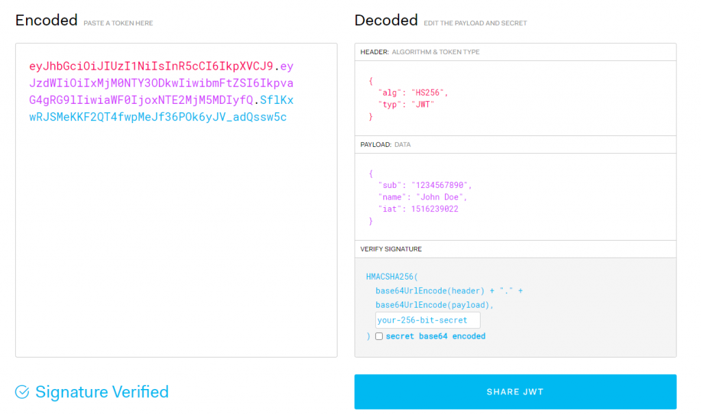 也就是你可以理解为Header.Payload.Verify Signature,它们均是base64加密的,因此你可以单独对其进行解密