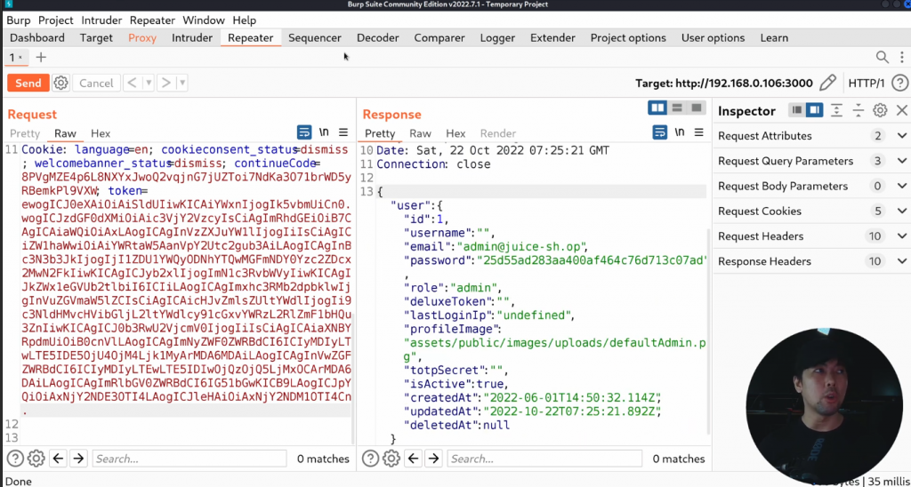 视频中就是通过类似的方式,修改请求头中的Authorization和Cookie中的token,最终可以修改管理员的密码,最终登录管理员账户