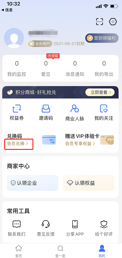 然后进入爱企查客户端,点击会员兑换