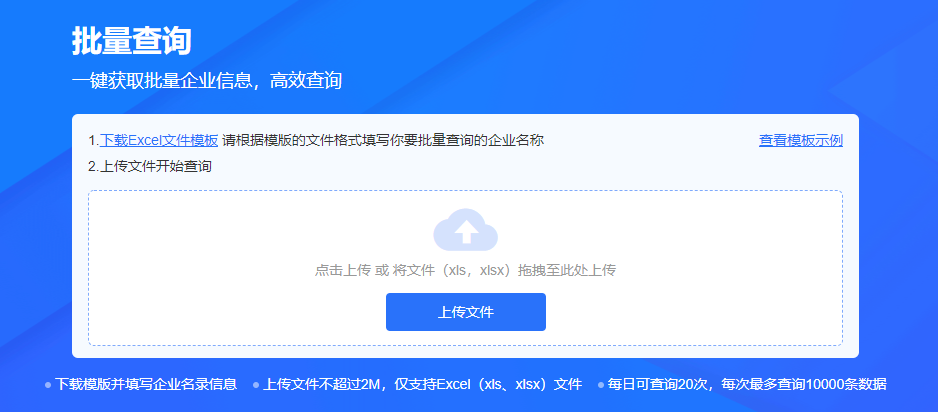 - 支持上传批量企业名称,获取批量企业信息