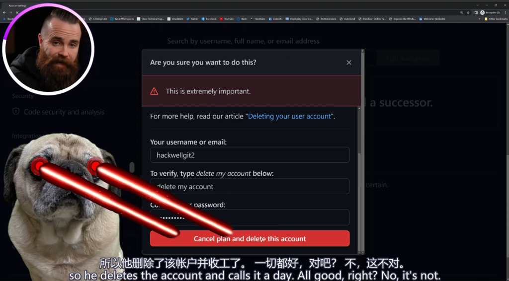 通常,在个人、公司删除项目时,会有下面的操作,在移除项目后,同时删除Github账户
