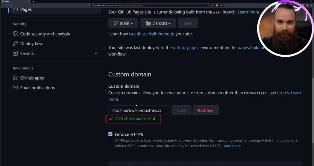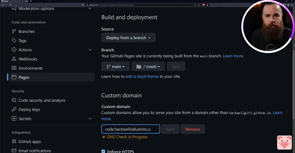 并在custom domain里设置我们要使用的域名,可以看到现在已经在检查DNS了