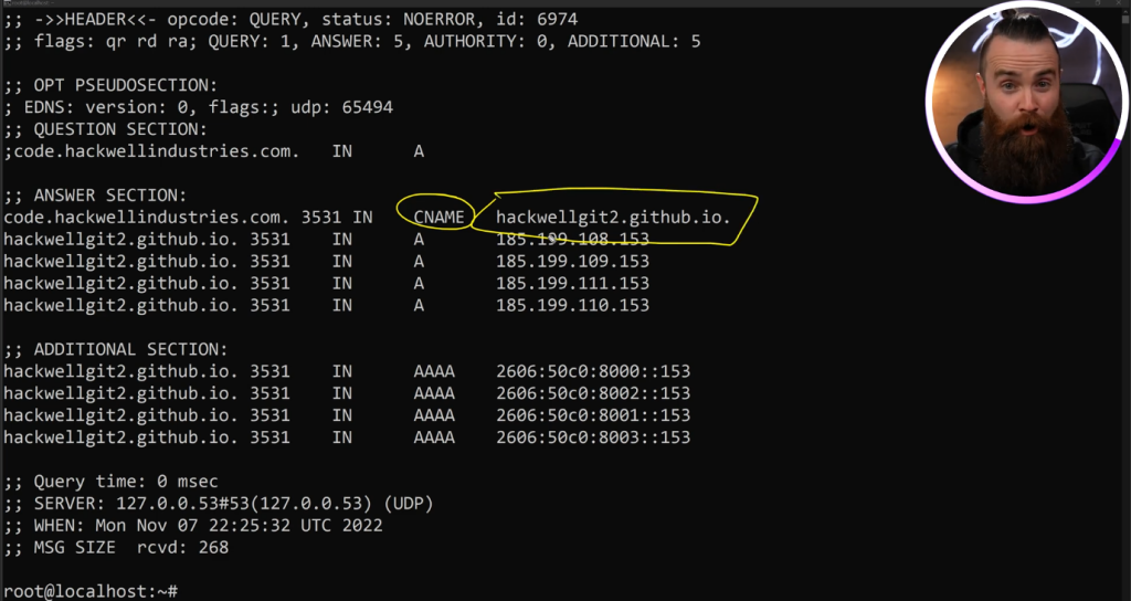 可以看到确实存在CNAME解析到github.io