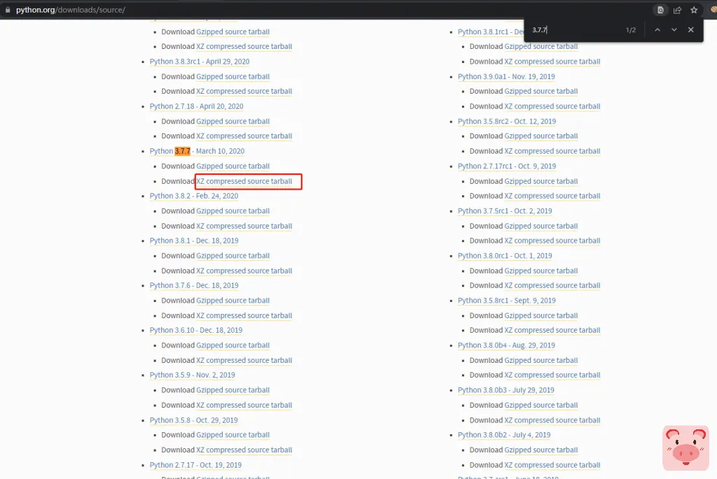 我们将复制XZ compressed source tarball对应的链接,然后可以使用curl下载