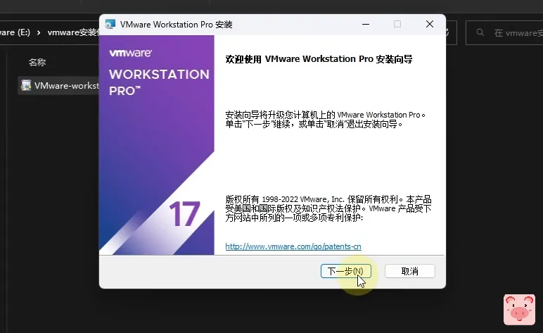 运行VMware-workstation-full-17.0.0-20800274.exe(2022-11-23教程,之后肯定会有新版本,建议官网下载)