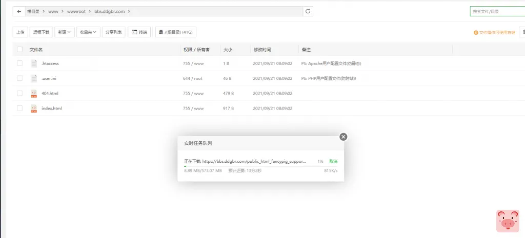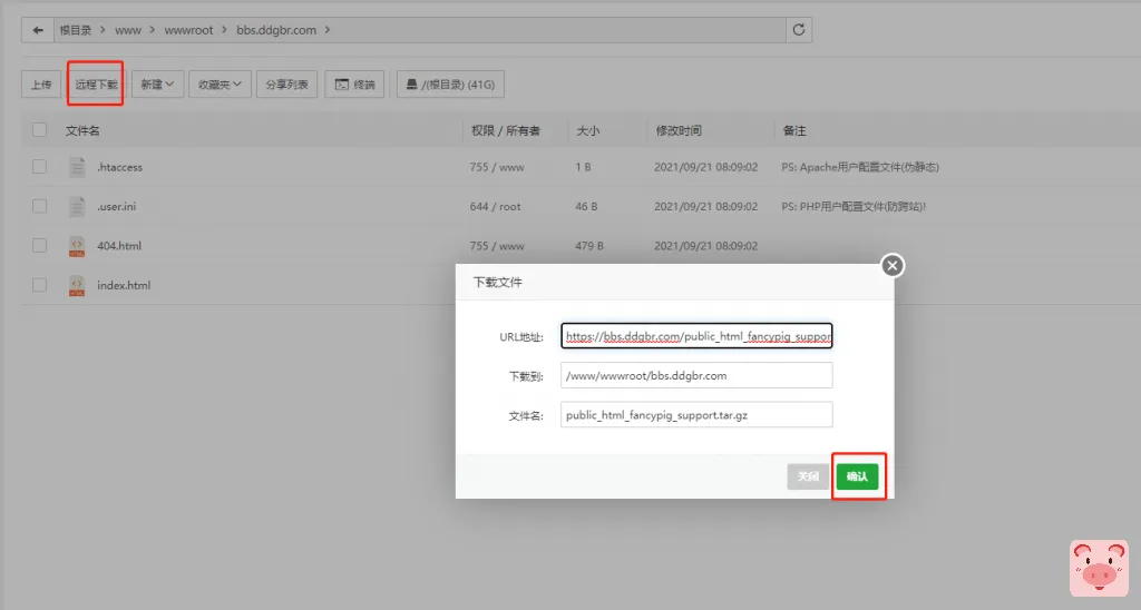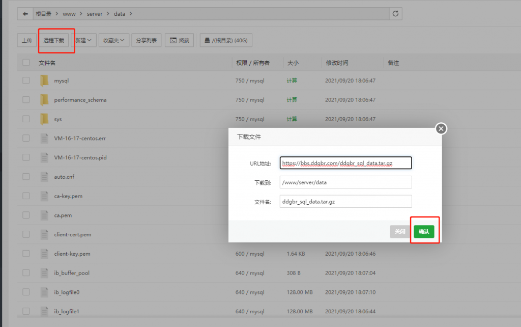 在新的腾讯云服务器上,进入www/server/data目录远程下载刚刚打包好的数据库文件