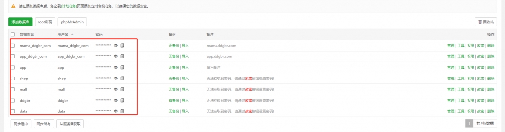 这里可以看到客户其实是以前wdcp的用户转的宝塔面板,然后数据库是放在wdcp面板默认的路径里了