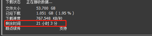 我们这里客户图片和附件数据打包50多个GB,带宽就5-6MB,要手动下载大概要花20个小时的时间