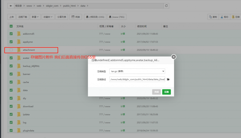 这里attachment和avatar我们要单独打包传到oss里