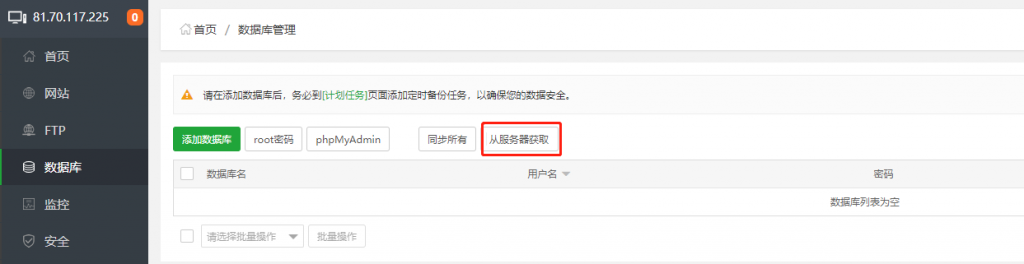 这里简单讲解一下,我们刚才传好了数据库文件,现在需要点击从服务器获取