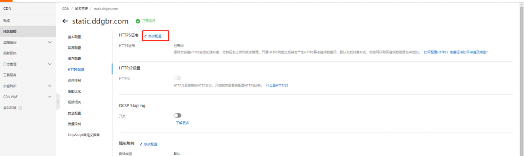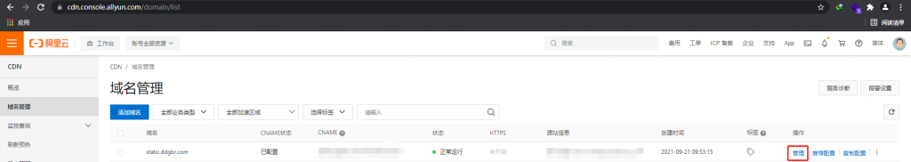 我们这里默认你已经会申请证书了,然后进入CDN后台,点击管理
