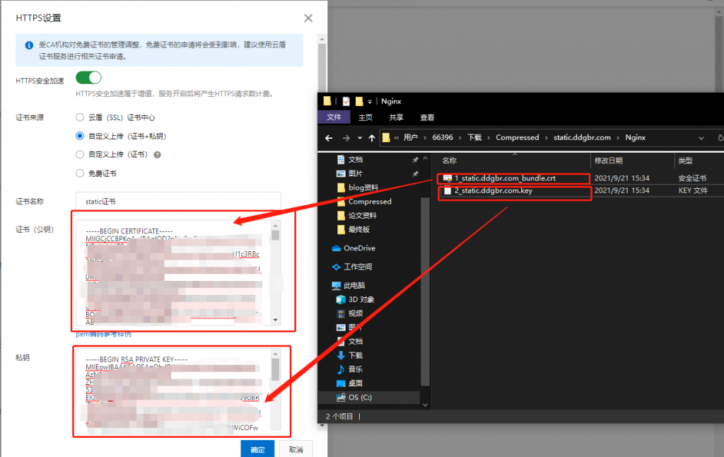 然后如果你要使用https访问,我们需要配置一下证书,具体证书申请的步骤这里不再赘述了。